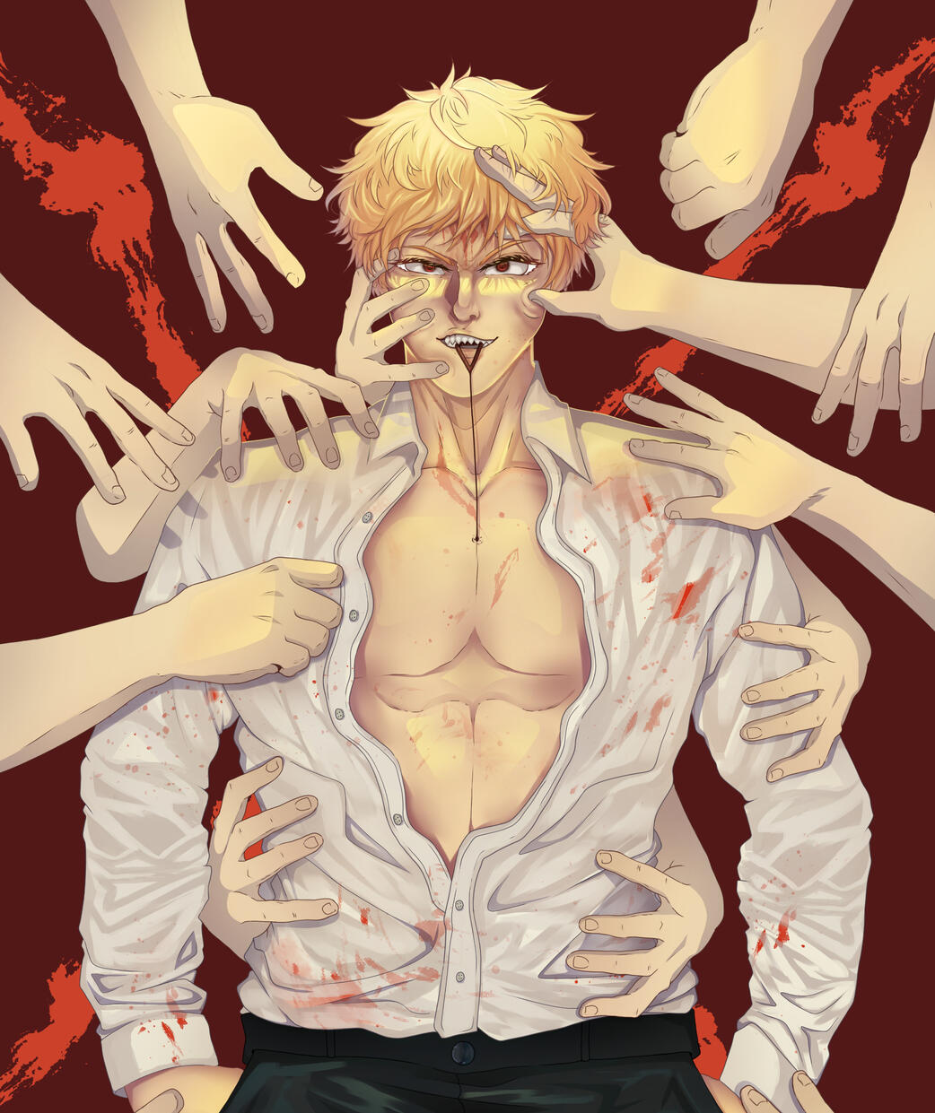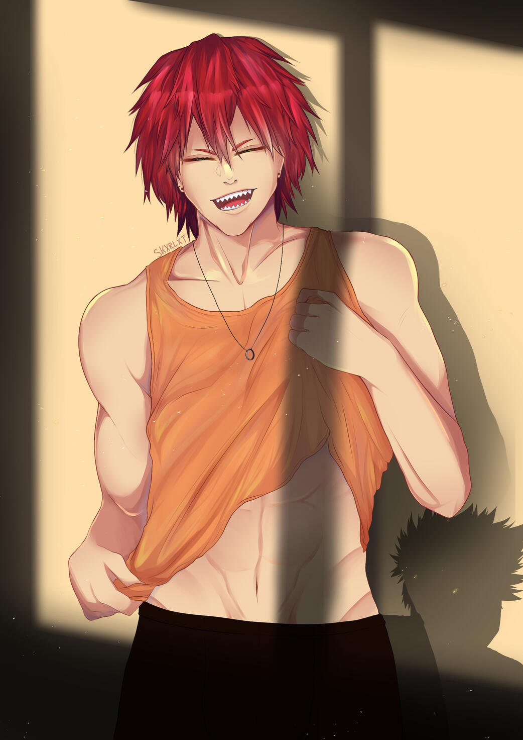 • I prefer to be drawn masculinely female, if that makes sense. Namely arm/armpit hair, snail trail, muscle build. I'm fine with boobs and feminine traits like femme eyelashes but I prefer to be drawn as a mixture of femme and masc. But overall, I like seeing what people come up with.• I am fine with suggestive & NSFW art.• Regarding NSFW art, it has to be solo and not with or implied to be with another person(s) unless it is someone I know and the other party has consented.• Also regarding NSFW art, please note, Skarlet is mainly drawn with a female chest but male genitals, as well as Krimson having male chest and female genitals :)