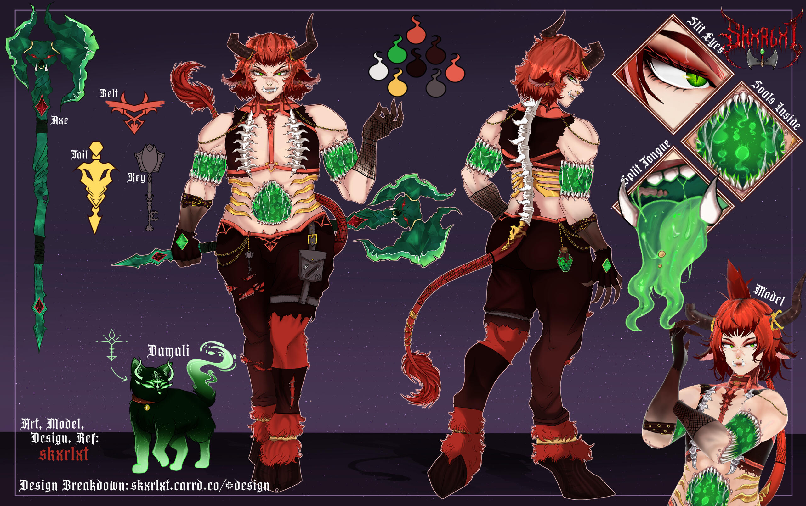 Yo! I'm Skxrlxt (Skarlet)!, I'm an Australian Minotaur VTuber with way too many hobbies and skills, most of which you'll find below.